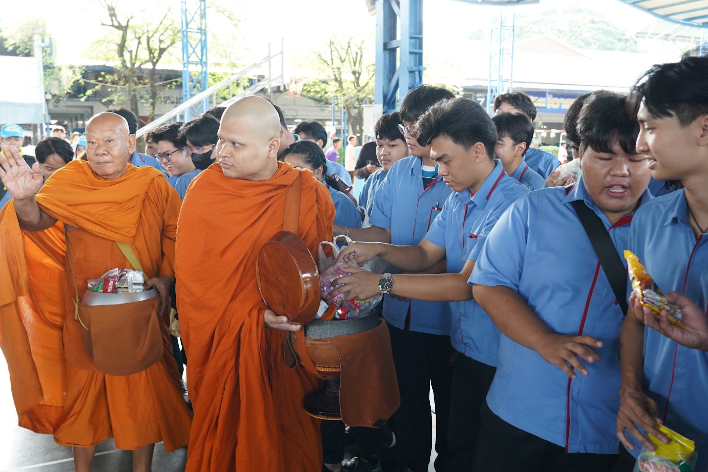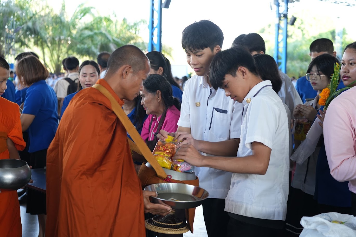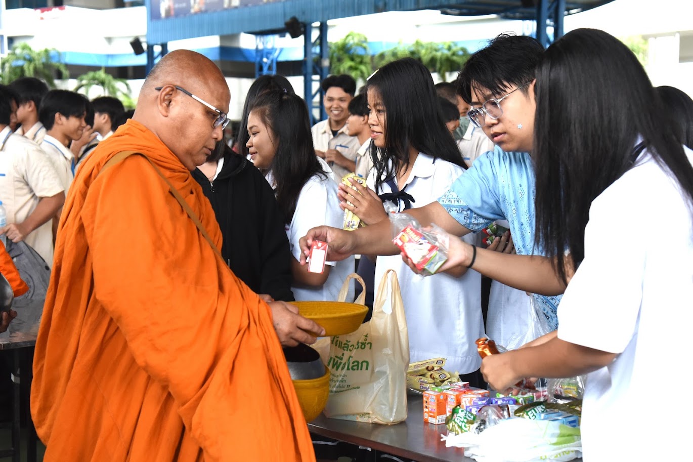 ทำบุญตักบาตรประจำสัปดาห์ วันแรกเปิดภาคเรียนที่ 2 ปีการศึกษา 2566 ณ อารีน่า2 วิทยาลัย อี.เทค