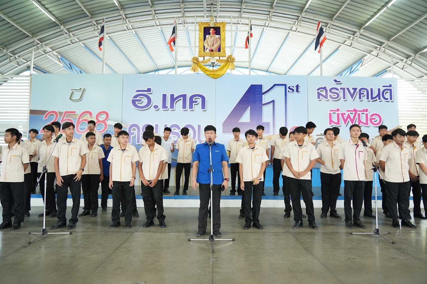 วันที่ 2 ธันวาคม 2568 เข้าแถวตอนเช้าพร้อมกัน นำร้องเพลงชาติและสวดมนต์โดยตัวแทนนักศึกษาแผนกช่างเทคนิคอุตสาหกรรมและช่างกลโรงงาน