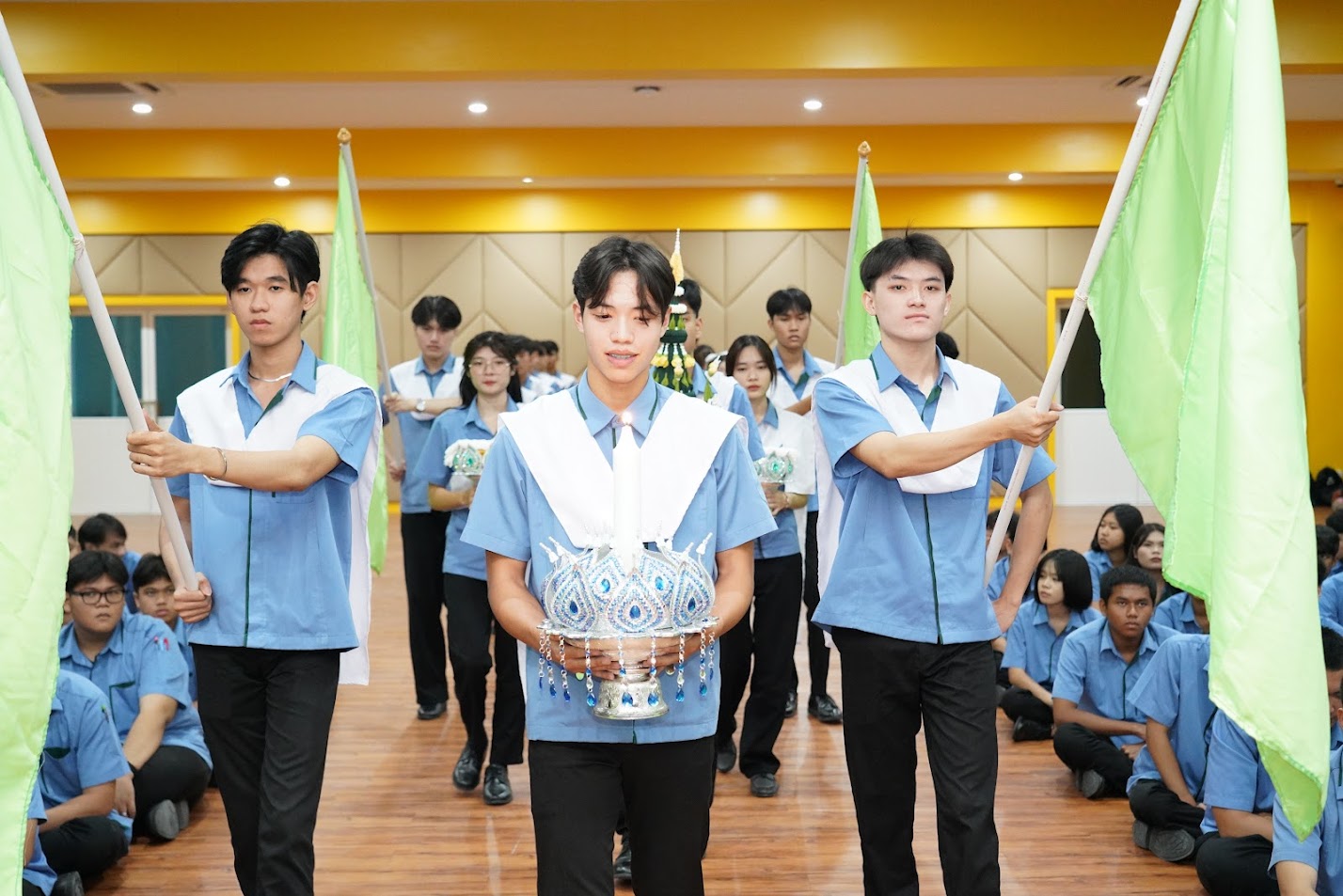 วันที่ 15 มกราคม 2569 เข้าแถวตอนเช้าพร้อมกัน นำร้องเพลงชาติและสวดนต์โดยตัวแทนนักศึกษาแผนกการตลาด