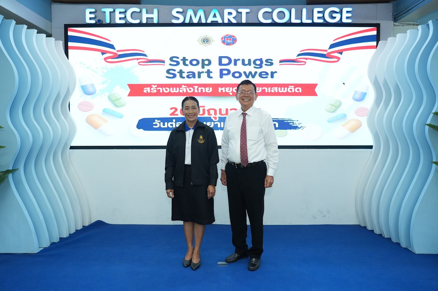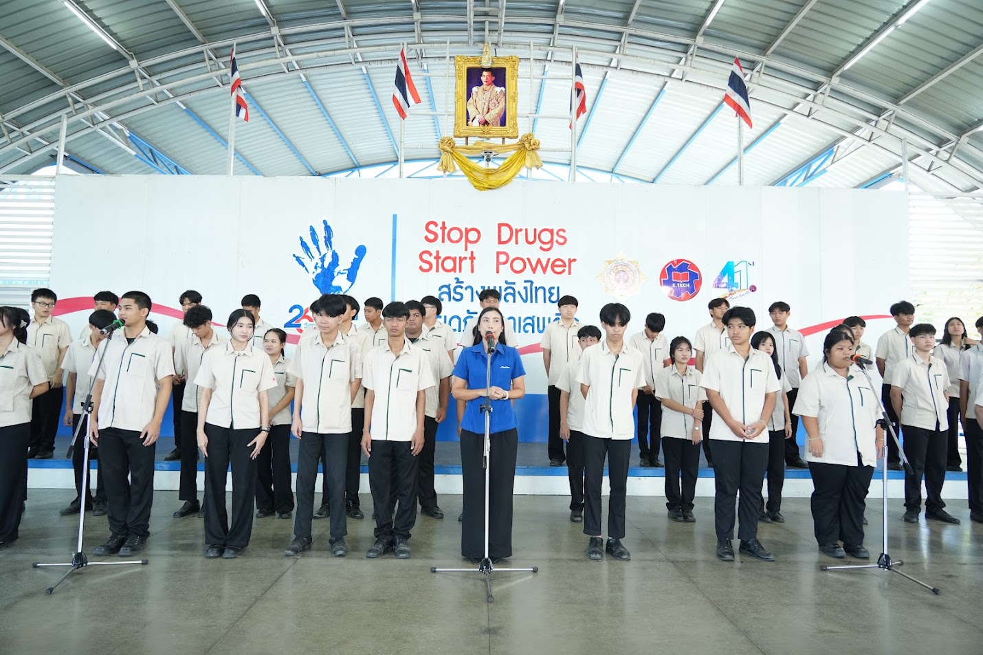 พิธีปิดการแช่งขันฟุตชอลต้านยาเสพติด ครั้งที่ 19 ประธานในพิธี อาจารย์อัมพร อุนทสูรย์ รองผู้อำนวยการ วิทยาลัยเทคโนโลยีภาคตะวันออก (อี.เทค) ณ อารีน่า1 วิทยาลัย อี.เทค