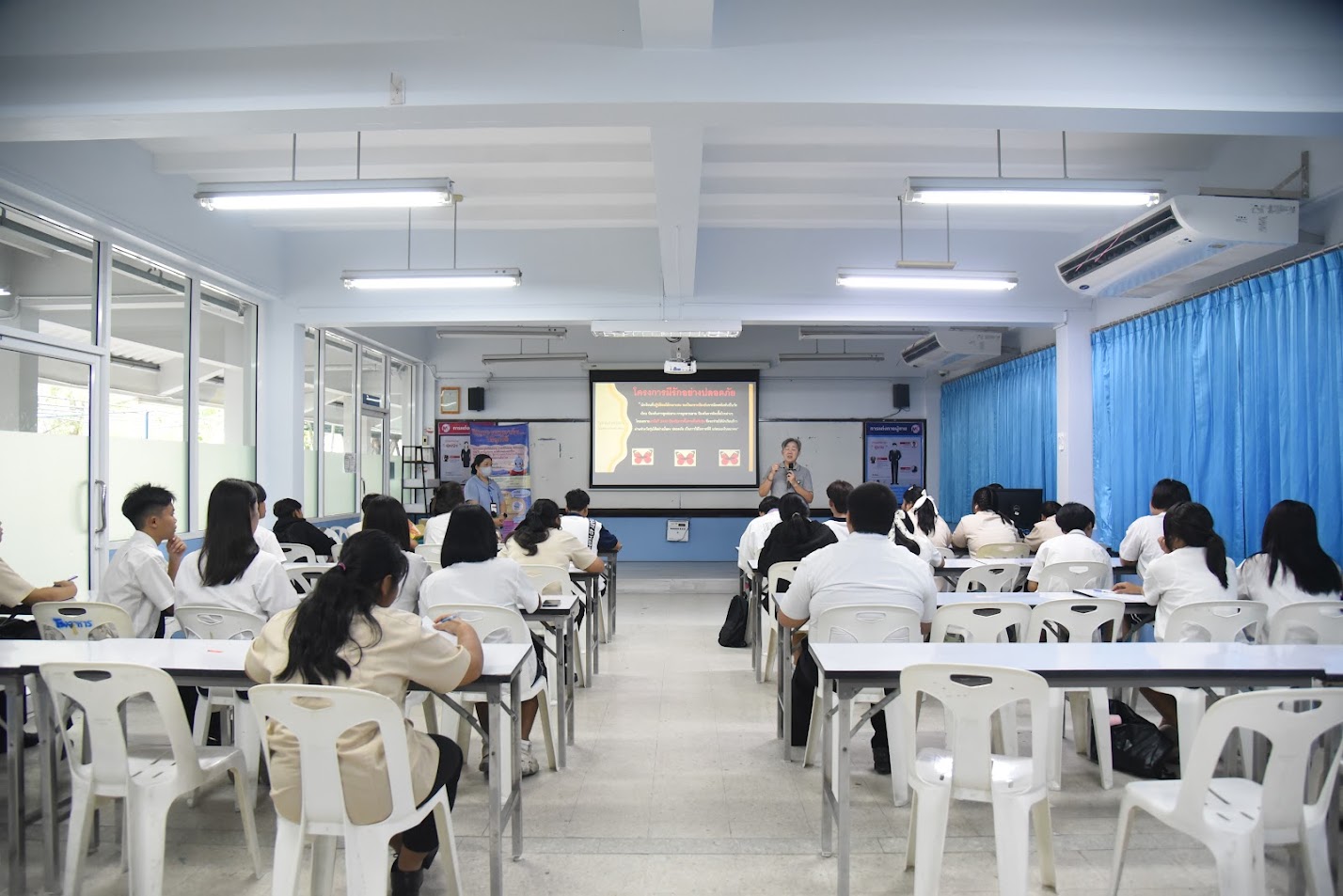 วันที่ 7 ธันวาคม 2569 เข้าแถวตอนเช้าพร้อมกัน นำร้องเพลงชาติและสวดมนต์โดยตัวแทนนักศึกษาแผนกวิทย์-คณิต