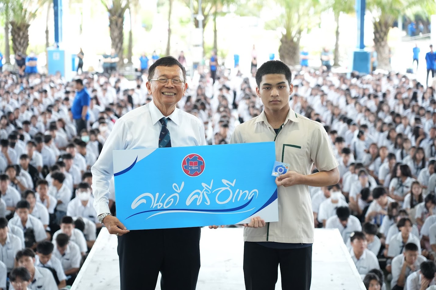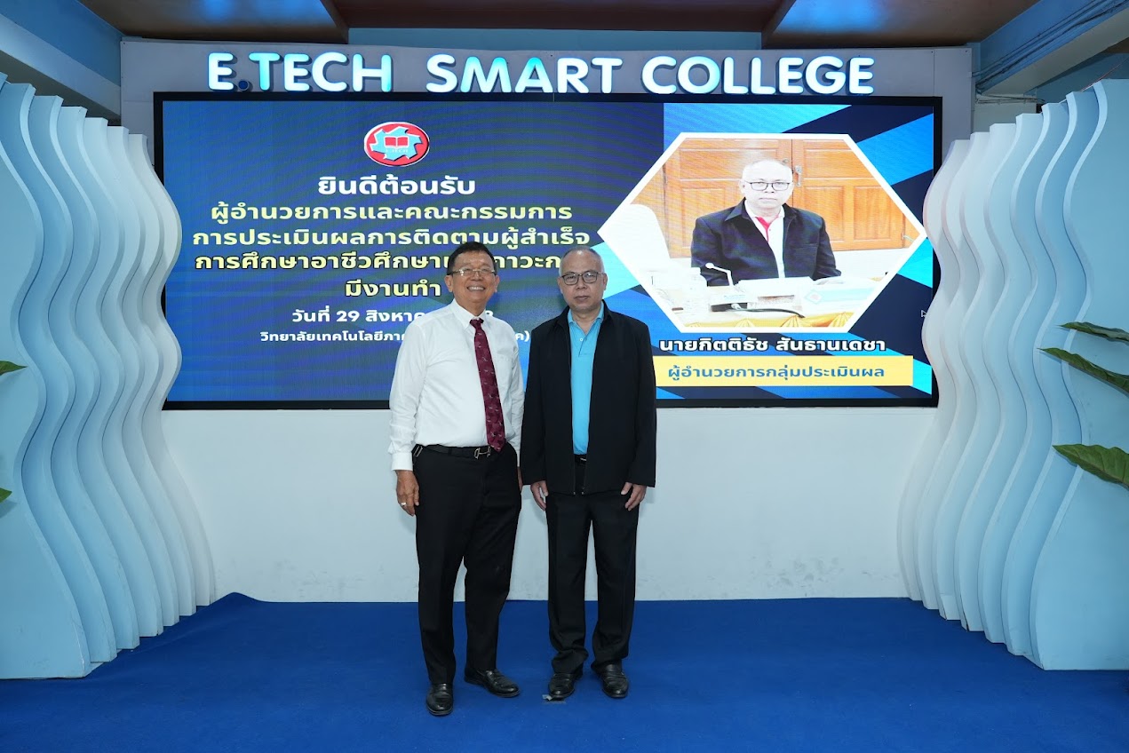 วันที่ 3 ธันวาคม 2568 นักศึกษา อี.เทค ได้รับโล่รางวัลจากนายกรัฐมนตรี นายอนุทิน ชาญวีรกุล จากการเข้าประกวดนวัตกรรมสร้างเสริมสุขภาพ Prime Minister’s Award for Health Promotion Innovation 2025 ประเภทอาชีวศึกษา (ปวช. หรือเทียบเท่า) จาก 35 ทีม ทั่วประเทศ คัดเลือกเพื่อเข้ารอบที่ 2 จำนวน 15 ทีม และรอบที่3 โดย อี.เทค เข้ารอบ10 ทีมสุดท้ายจำนวน 6ทีม ในการสร้างบอร์ดเกมเดดไลน์ แดช โปรเจกต์เด็กฝึก เพื่อสร้างประสบการณ์ให้ นศ. ที่ใกล้เรียนจบ มีภูมิคุ้มกันก่อนออกไปเผชิญความเครียดจากการทำงานในอนาคต โดยให้นักศึกษา อี.เทค ภาคบ่าย กว่า 100 ห้องเรียน ช่วยกันตอบแบบสอบถาม และให้ข้อมูลจากประสบการณ์จริง ผลการประกวด นักศึกษาแผนกคอมพิวเตอร์ อี.เทค นายฟ้าใหม่ ลิ้มบำรุง และนายทัพเทพพ์ ชิดชม ได้รางวัลรองชนะเลิศอันดับที่ 1 รับเงินรางวัล 50,000 บาท พร้อมประกาศนียบัตรและโล่รางวัลจากนายกรัฐมนตรี