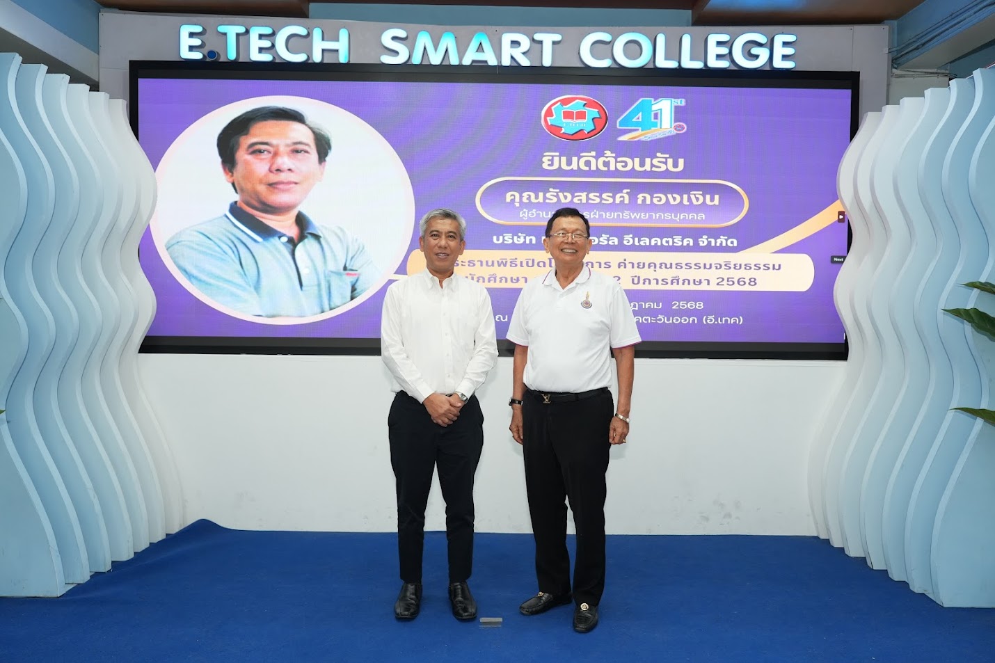 วันที่ 2 ธันวาคม 2568 คุณยูสุเกะ ชิโรตะ รองประธานบริษัท อิเดมิตสึ อพอลโล (ประเทศไทย) จำกัด และคณะผู้บริหาร ได้มอบน้ำมันเครื่อง Idemitsu มูลค่า 37,165 บาท ให้กับวิทยาลัย อี.เทค เพื่อสนับสนุนการเรียนการสอนของนักศึกษา อี.เทค สาขาช่างยนต์และแผนกที่เกี่ยวข้อง โดยมีจุดมุ่งหมายเพื่อพัฒนาทักษะด้านยานยนต์ ให้พร้อมสู่ภาคอุตสาหกรรมยุคใหม่