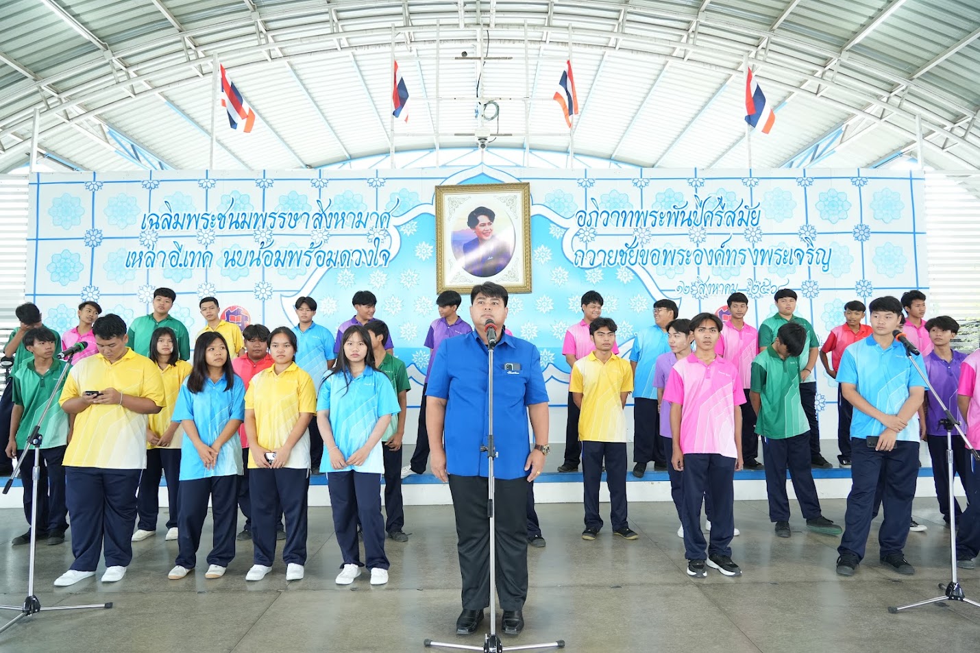 วันที่ 9 ธันวาคม 2568 เข้าแถวตอนเช้าพร้อมกัน นำร้องเพลงชาติและสวดมนต์โดยตัวแทนนักศึกษาแผนกไทย-สังคม-พลานามัย
