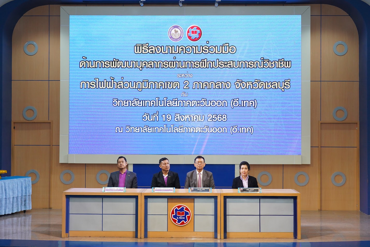 วันที่ 11 ธันวาคม 2568 พิธีลงนามความร่วมมือทางวิชาการ ระหว่าง บริษัท อินเทลลิเจนท์ อีวี แอนด์ อีเอสเอส จำกัด กับ วิทยาลัยเทคโนโลยีภาคตะวันออก (อี.เทค) ณ ห้องประชุมราชพฤกษ์ วิทยาลัย อี.เทค
