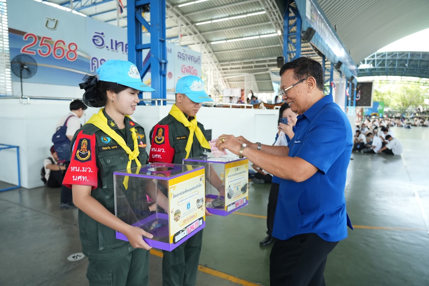 วันที่ 4 ธันวาคม 2568 ทำบุญตักบาตร กิจกรรมวันพ่อ และร่วมบริจาคช่วยเหลือช่วยไถ่ชีวิตโค-กระบือและสร้างหลังคา โซล่าเซลล์ โรงพยาบาลพานทอง ณ อารีน่า2 วิทยาลัย อี.เทค