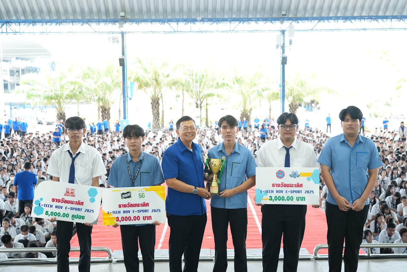 วันที่ 9 มกราคม 2569 พิธีมอบรางวัลให้แก่นักศึกษาที่เข้าร่วมการแข่งขันระดับนานาชาติ และได้รับ “ถ้วยพระราชทาน สมเด็จพระกนิษฐาธิราชเจ้ากรมสมเด็จพระเทพรัตนราชสุดาฯ สยามบรมราชกุมารี” จากการแข่งขัน “ควบคุมหุ่นยนต์และระบบด้วยเทคโนโลยีอุตสาหกรรม 4.0 ครั้งที่ 4” สาขา การออกแบบและผลิตชิ้นงานด้วยโปรแกรม CAD/CAM จัดขึ้นระหว่างวันที่ 15–17 ตุลาคม 2568 ณ ศูนย์นิทรรศการและการประชุมไบเทค (BITEC) บางนา กรุงเทพมหานคร การแข่งขันได้รับการสนับสนุนโดย บริษัท Guangzhou ZWSOFT Co.,Ltd และ บริษัท Beijing ZWSOFT Digital Technology Co.,Ltd ซึ่งเป็นบริษัทพัฒนาซอฟต์แวร์จากประเทศจีน โดยใช้ซอฟต์แวร์ ZWCAD ทั้งแบบ 2 มิติ และ 3 มิติ ในการแข่งขัน ผลการแข่งขัน ประเภทที่ 2 การออกแบบและผลิตชิ้นงานด้วยโปรแกรม CAD/CAM (ประเภท 3 มิติ) รางวัลชนะเลิศอันดับที่ 2 นายศรัณยพงศ์ แก้วเมือง ห้อง MR.3/1 ได้รับ License Software ZWCAD แท้ 1 License (มูลค่าประมาณ 300,000 บาท) และเงินรางวัล 100 USD (ประมาณ 3,000 บาท) รางวัลชนะเลิศอันดับที่ 3 นายนครินทร์ สุขเกษม ห้อง SIN.2/1 นายรพีพัฒน์ พันอินทร์ ห้อง SIN.2/1 ได้รับ License Software ZWCAD แท้ คนละ 1 License (มูลค่าประมาณ 300,000 บาท ต่อ License) ประเภทที่ 1 การออกแบบและผลิตชิ้นงานด้วยโปรแกรม CAD/CAM (ประเภท 2 มิติ) รางวัลชนะเลิศอันดับที่ 3 นายนครินทร์ สุขเกษม ห้อง SIN.2/1 ณ วิทยาลัย อี.เทค